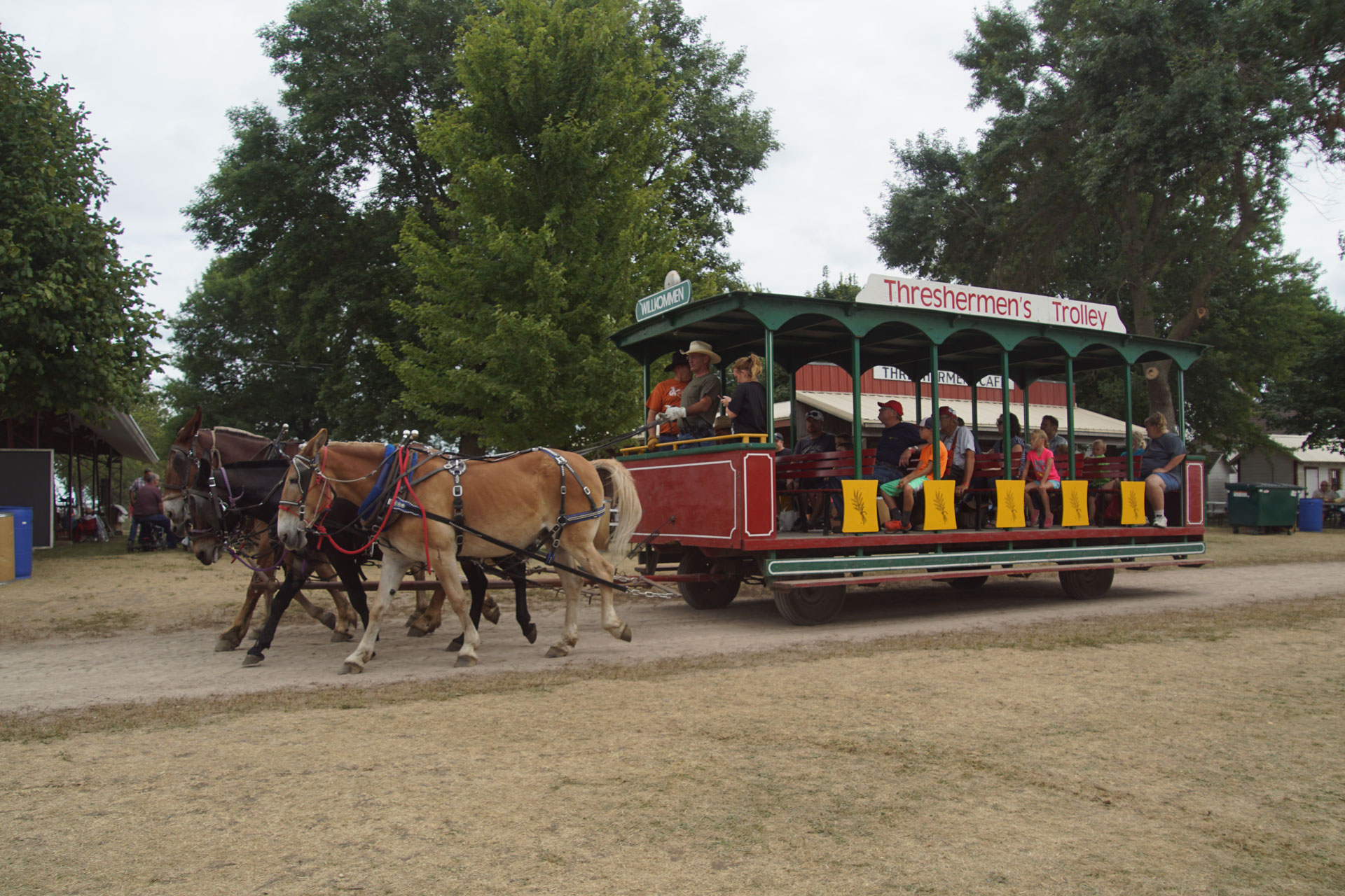While parking, save those feet for walking the site! Hop on one of the tractor-pulled people-movers and get a ride to the crossing. After wandering the buildings, touring the lines of tractors, and seeing all of the field activities, rest those feet and take in the bigger picture of the show by hopping on one of the trolleys. Choose a trolly making the short loop around the grounds or choose a trolly going to the field to take in the action.
